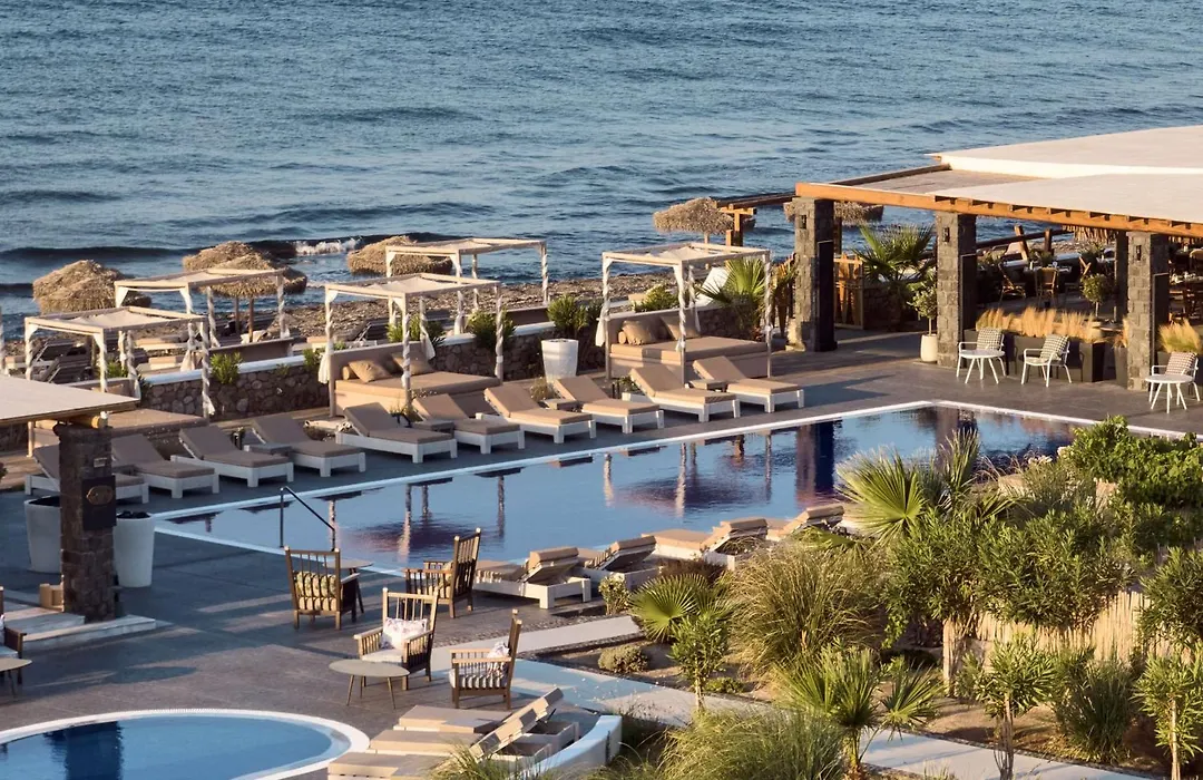 Sea Breeze Santorini Beach Resort, Curio By Hilton Agios Georgios met 34 kamers ligt op 25 minuten loopafstand van Perissa beach en biedt gasten een seizoensgebonden buitenzwembad. Dit resort met een restaurant en een bagageopslag bevindt zich op slechts 15 minuten rijden van het Witte strand in Agios Georgios.